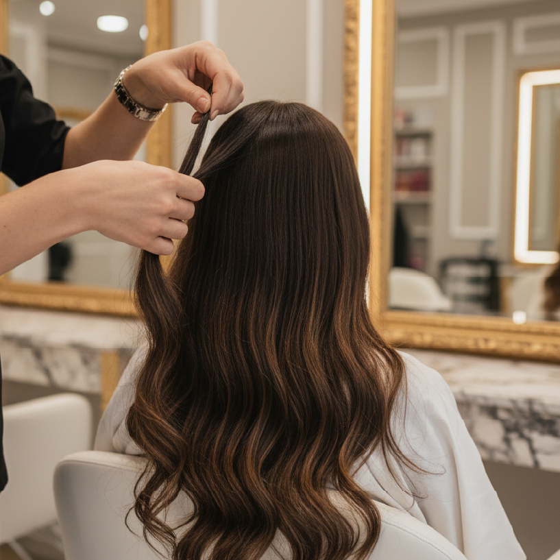 We ensure professional, invisible installation of your hair extensions, coupled with precise color matching and routine maintenance to preserve their beauty and volume, granting you a flawless, long-lasting look.